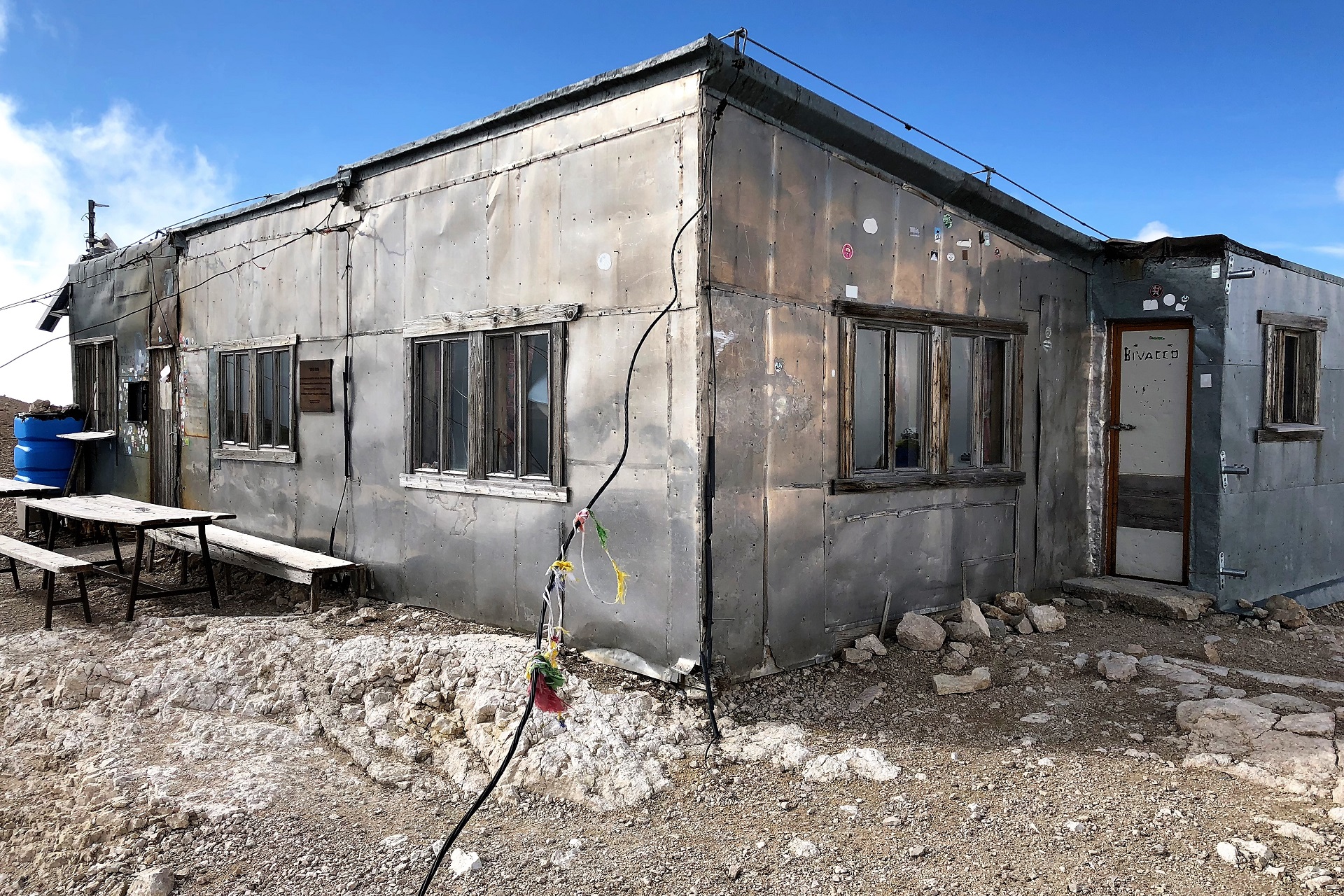 Schodzimy do schroniska, właściwie schronu. Toaleta jest na zewnątrz. W środku gospodarz nieznający słowa po angielsku, dwa stoły i kilka łóżek z pościelą.