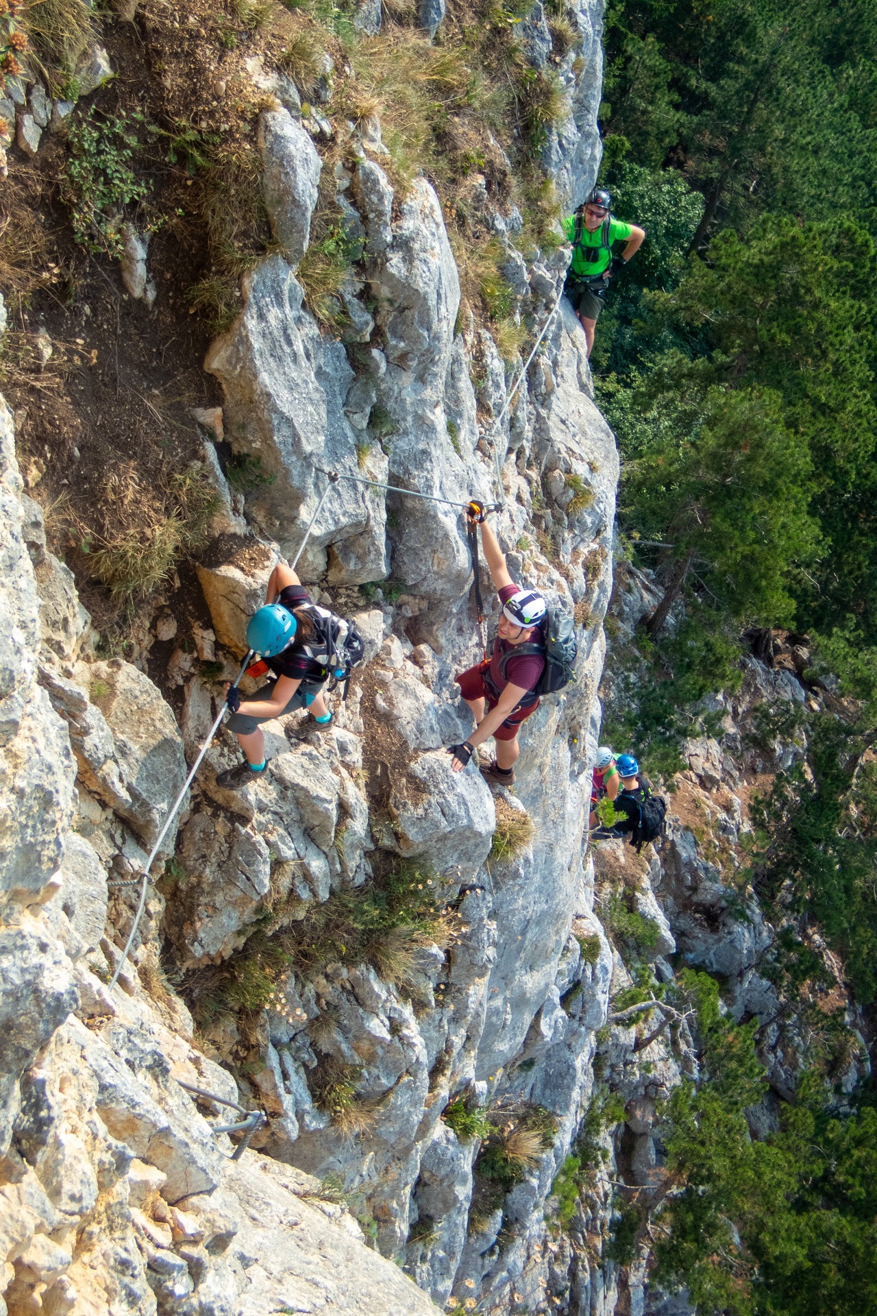 Kolejny etap na via ferracie to wspinaczka pionowym odcinkiem 10-metrowej ścianki, który pomimo udogodnień w postaci klamer jest dużym siłowym wyzwaniem. Po jej pokonaniu wchodzimy na zalesiony grzbiet, gdzie znajduje się miejsce odpoczynku oraz książka przejść via ferraty.