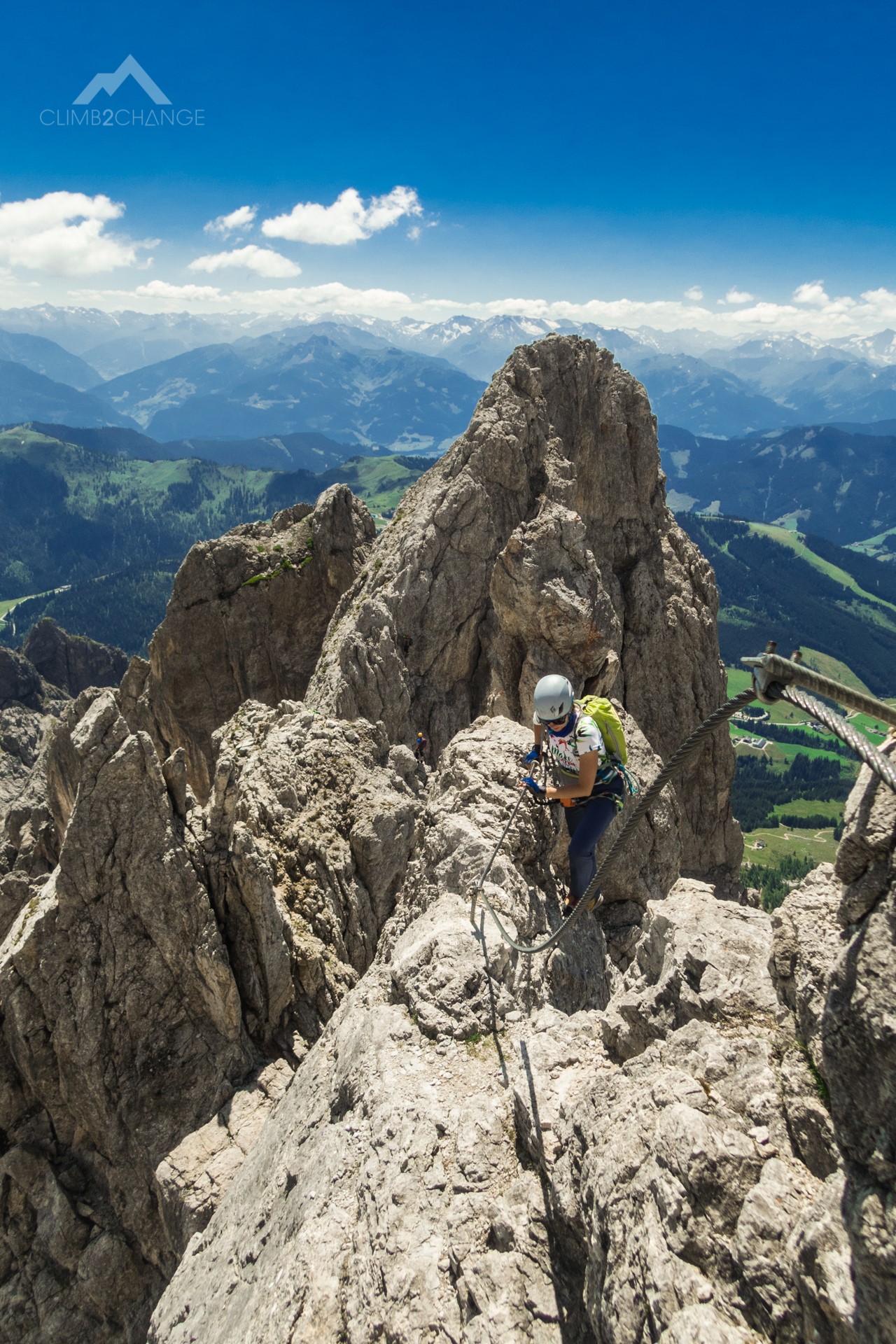 Na via ferracie przez całą drogę towarzyszą olśniewające widoki na Alpy, w tle widać Grossglockner