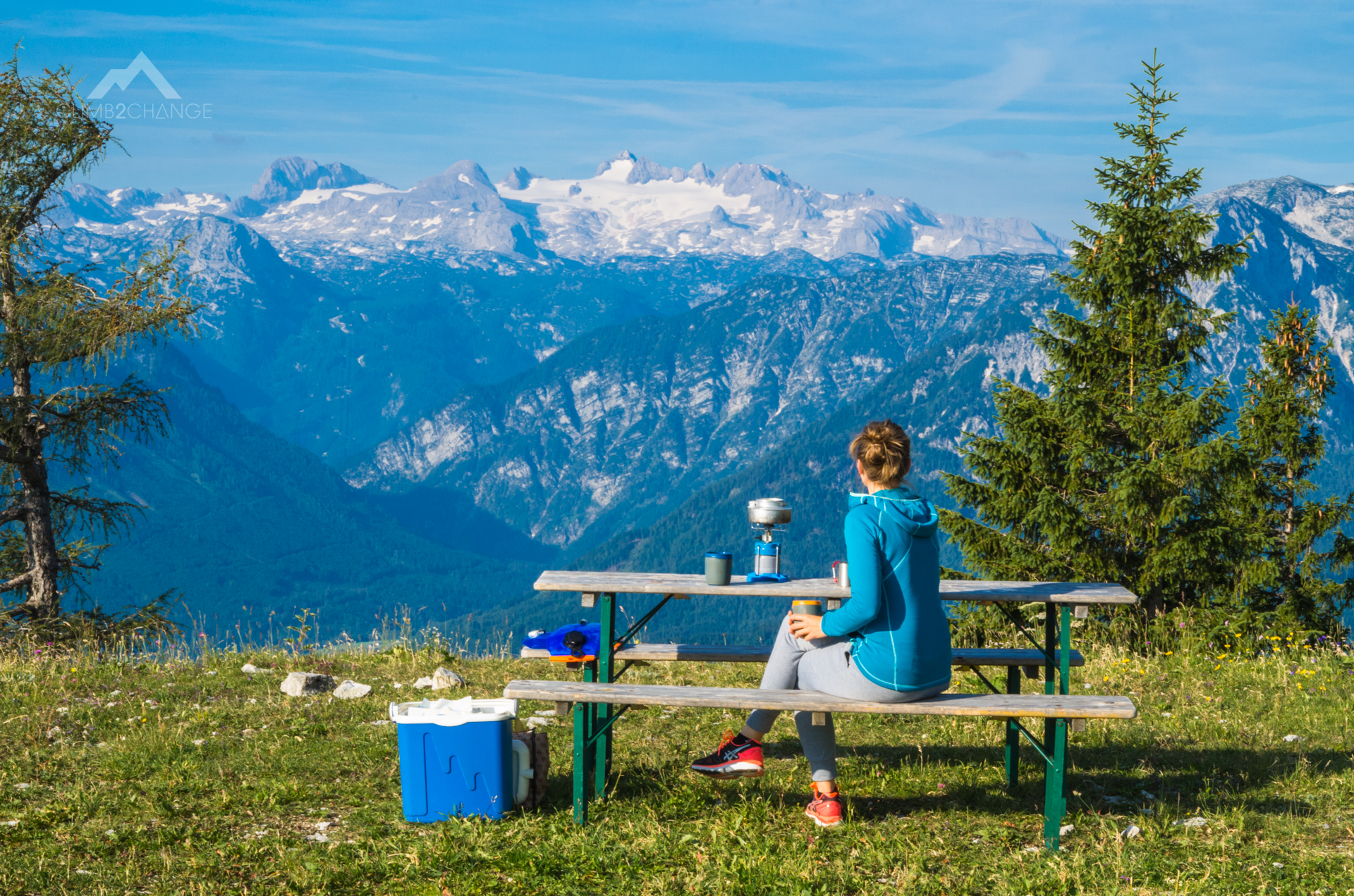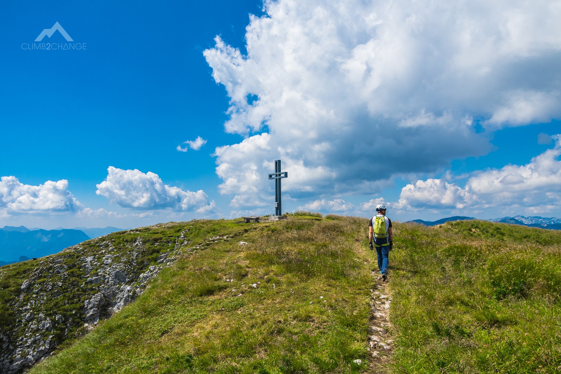 Po pokonaniu tego odcinka czeka na nas przyjemne wspinanie w dobrej jakości skale. Wychodzimy na grzbiet góry przez skałki poprzerastane kosówkami. Tylko kilkadziesiąt metrów dzieli nas od szczytu Loser (1837 m n.p.m.). Tam, na ławce, robimy zasłużoną przerwę.