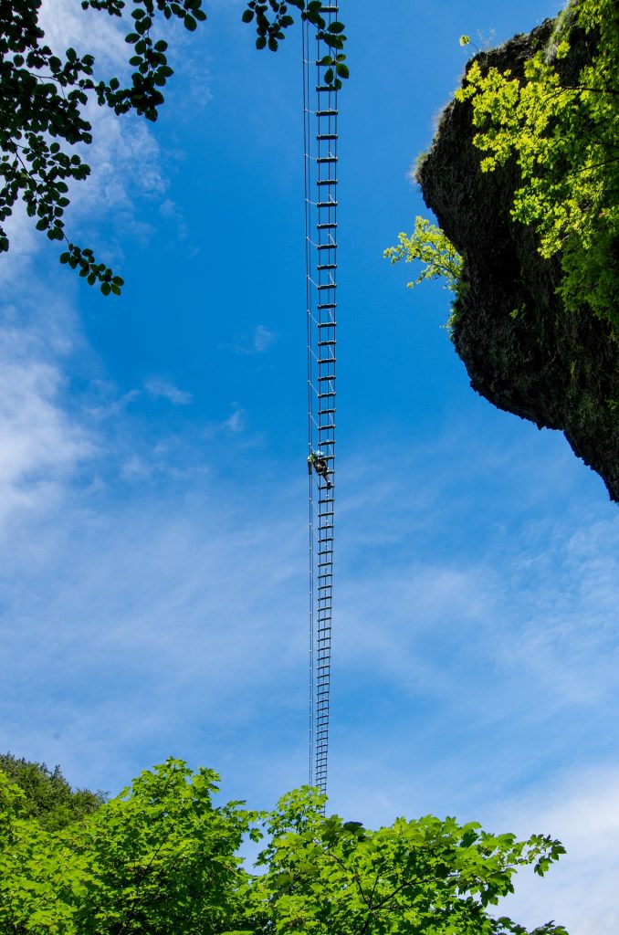 Drogi są ubezpieczone linami poręczowymi i klamrami. Urozmaiceniem tego miejsca jest słynny zawieszony 40 metrów nad ziemią most, którego długość wynosi 80 metrów. Jest on najbardziej charakterystycznym miejscem całego kompleksu, a ponadto jest najdłuższą tego typu konstrukcją w Europie! Na tle pozostałych dróg mocno wyróżnia się metalowa, wysoka na 37 metrów siatka à la sieć rybacka. Co prawda nie jest on via ferratą, ale z całą pewnością bardzo atrakcyjnym elementem całego kompleksu. Można na niej sprawdzić swoją wytrzymałość i zaznać dreszczyku adrenaliny, ponieważ siatkę pokonuje się w niewielkim przewieszeniu. Ciekawą trasą o różnych wariantach przejścia jest Komin, poprowadzona skalnym kominkiem. Rejon ten wciąż się rozwija, a w planie jest budowa nowych via ferrat. Jeżeli czujesz, że chcesz spróbować takiej przygody, ale masz obawy czy sama/sam sobie poradzisz, to z powodzeniem możesz skorzystać z wyjścia na ferratę na Skalke z przewodnikiem w naszej Akademii Wspinania climb2change podczas jednodniowego kursu via ferrata na Słowacji lub weekendowego kursu via ferrata na Słowacji.